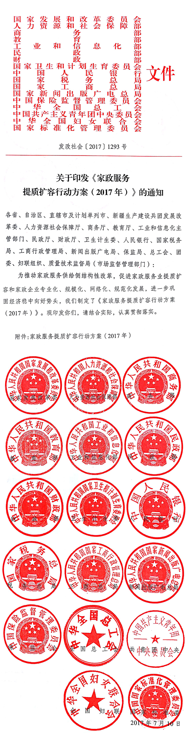國(guó)家發(fā)改委、人社部、商務(wù)部等17個(gè)部門關(guān)于印發(fā)《家政服務(wù)提質(zhì)擴(kuò)容行動(dòng)方案(2017年)》的通知