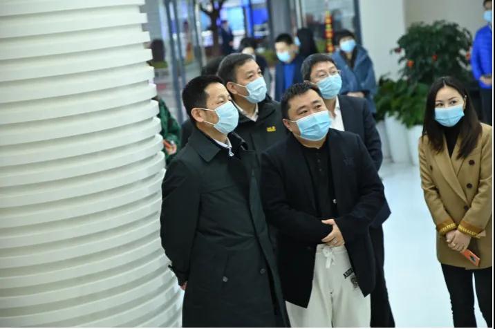 上海副市長吳清(中)調(diào)研黑瞳科技,黑瞳科技董事長周凱(右一)、副總裁閔丹(左一)接待陪同