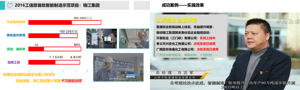 航天智控的主要客戶為煤炭化工、鋼鐵冶金、石油石化、水泥、電力等行業(yè),目前已經(jīng)為700多家大型客戶提供設(shè)備故障智能分析系統(tǒng)和智能診斷服務(wù),產(chǎn)品廣泛應(yīng)用于中石油西部管道公司、北京地鐵5號(hào)線、中石化、中海油、神華集團(tuán)、海螺水泥、鞍鋼集團(tuán)、日照鋼鐵、魏橋集團(tuán)、一汽大眾等頭部企業(yè),積累了上萬案例的數(shù)據(jù)庫(kù)。