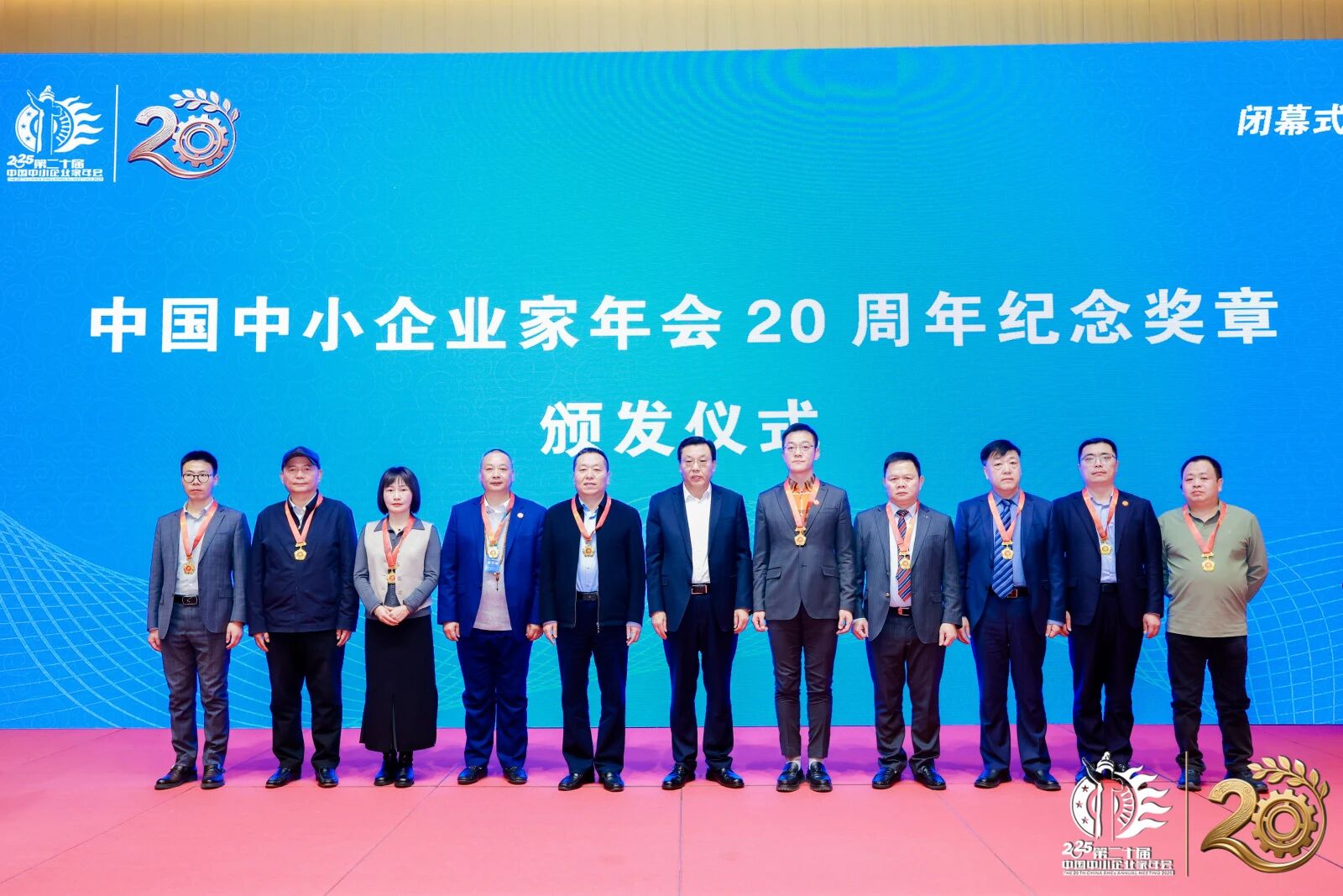 閉幕式伊始,大會頒發(fā)了“中國中小企業(yè)家年會20年紀念獎章”。這枚沉甸甸的獎章,不僅是對長期陪伴年會成長、為中國中小企業(yè)發(fā)展事業(yè)做出卓越貢獻的杰出人士的崇高致敬,更凝聚了二十年來中國中小企業(yè)界風雨同舟、砥礪前行的深厚情誼與奮斗精神,激勵著后來者接續(xù)奮斗。